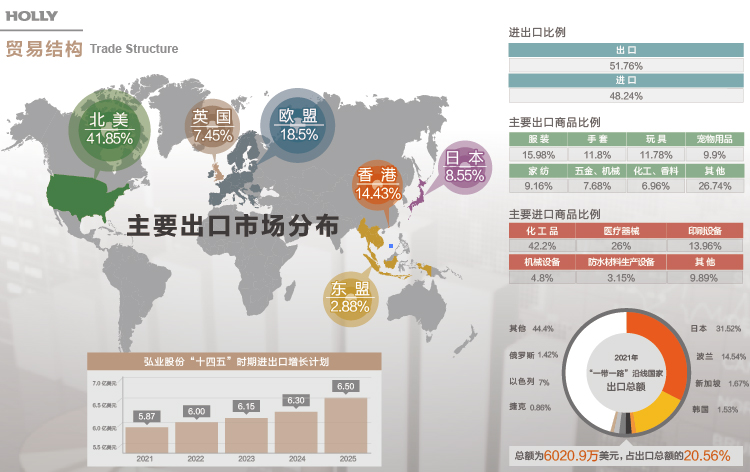 公司是全國(guó)較早的專業(yè)進(jìn)出口企業(yè)之一,擁有大批外貿(mào)專業(yè)人才。出口商品包括機(jī)電產(chǎn)品、船舶、玩具、休閑禮品、 紡織服裝、鞋帽服飾和家居用品等,進(jìn)口商品涵蓋化工、礦產(chǎn)、煤炭、醫(yī)療器械、機(jī)電設(shè)備、食品等領(lǐng)域。通過(guò)不斷的投入和建設(shè), 公司持續(xù)增強(qiáng)市場(chǎng)開拓、技術(shù)研發(fā)、生產(chǎn)制造、質(zhì)量保障等核心能力,進(jìn)出口總額連年攀升,多次入選全國(guó)進(jìn)出口企業(yè)500強(qiáng)。